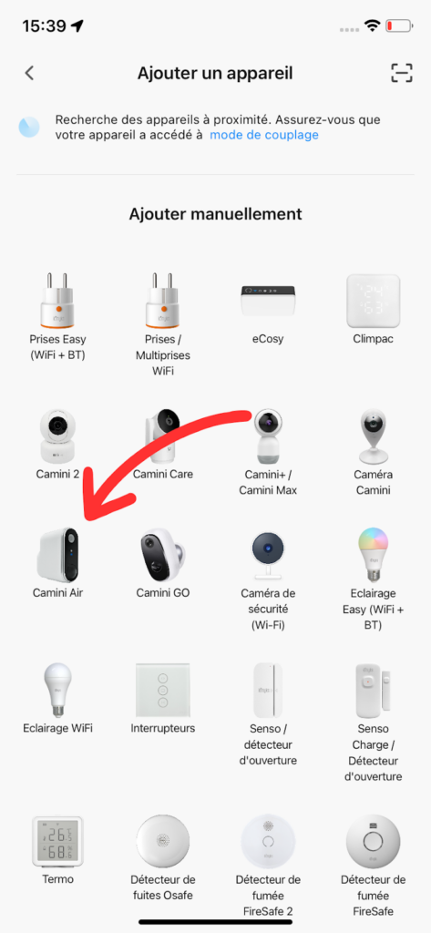 Sélectionnez “Camini Air”