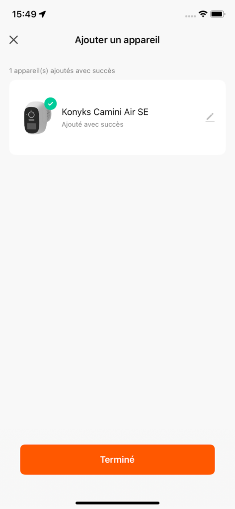 Un indicateur de progression s’affiche, lorsqu’il atteindra 100%, l’appareil aura été ajouté avec succès.