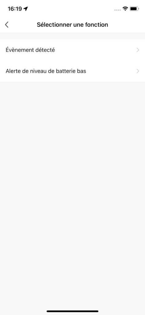 Sélectionnez votre Camini et choisissez “Événement détecté”