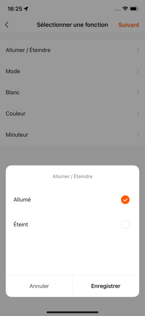 Dans la catégorie Alors, appuyez sur le petit +, choisissez exécuter le périphérique, sélectionnez votre ampoule et "Allumé" ou autre fonction.