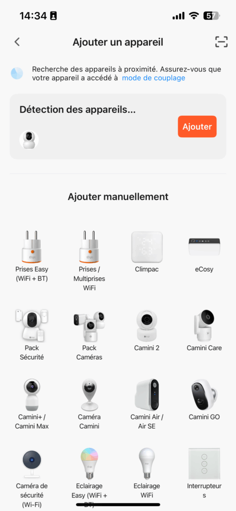 La caméra devrait être automatiquement détectée pour un ajout rapide via Bluetooth !