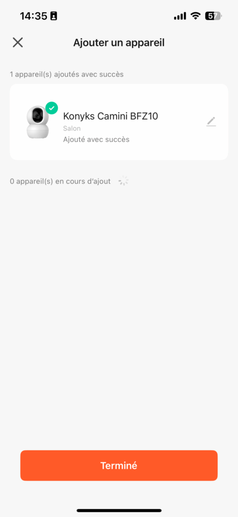 Un indicateur de progression s’affiche, lorsqu’il atteindra 100%, l’appareil aura été ajouté avec succès.