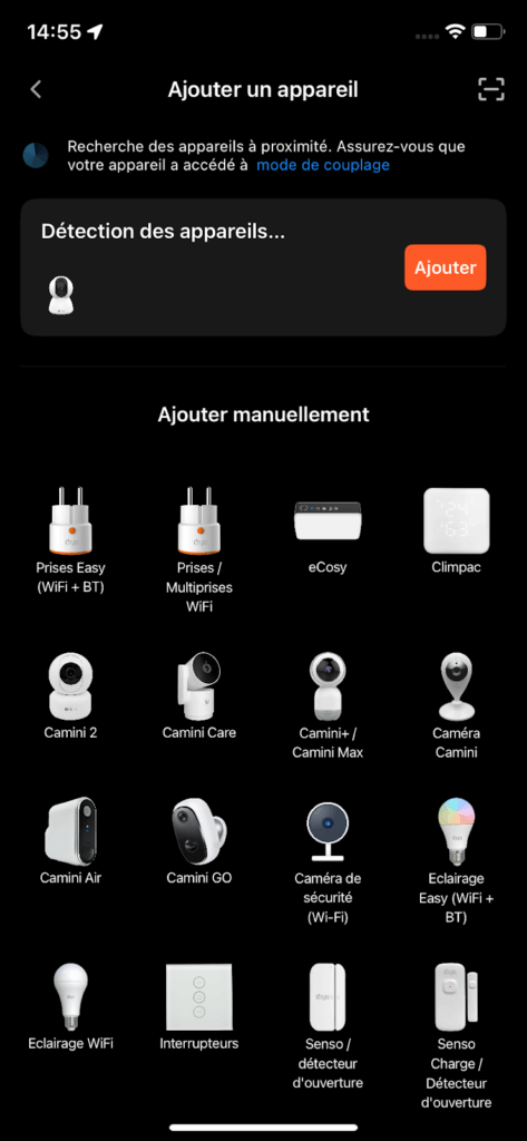 Cliquez sur « + » en haut à droite pour ajouter un appareil