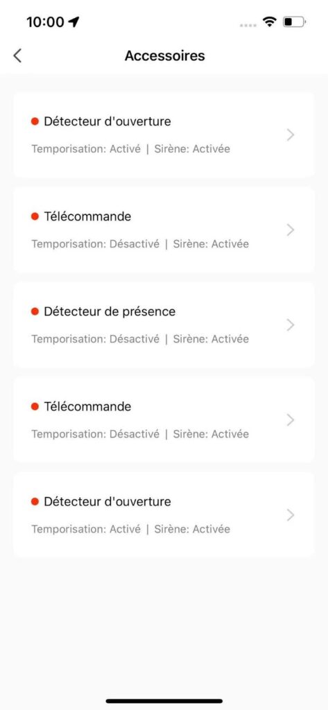 Notifications : choix des alertes envoyées sur le smartphone (détection mouvement, ouverture, déclenchement sirène).