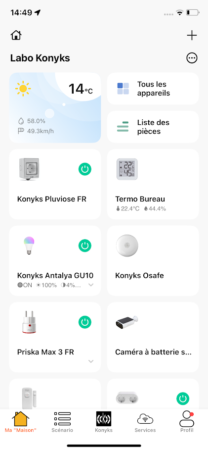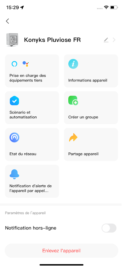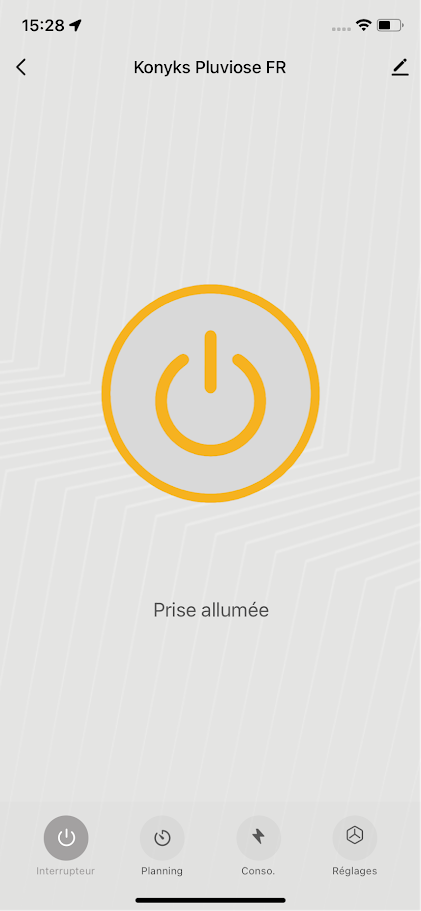Depuis la page d'accueil qui compile tous vos appareils, vous pouvez accéder à votre prise et retrouver la fonction allumer/éteindre