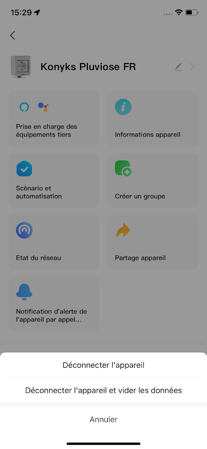 3- Cliquez sur Déconnecter l'appareil et vider les données :