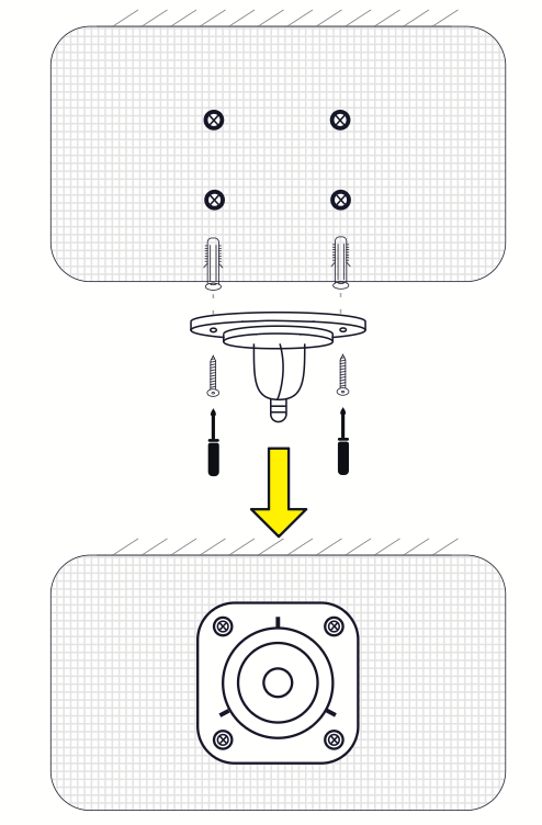 Alignez le support du panneau solaire et marquez les quatre cercles où percer les trous. Percez quatre trous. Insérez les quatre chevilles dans les trous et utilisez les vis pour fixer le support. Vissez le panneau solaire au support. Orientez le panneau solaire sur le support pour recevoir la plus grande quantité de lumière solaire. Dirigez le panneau vers le sud et inclinez-le vers le haut de 30°.