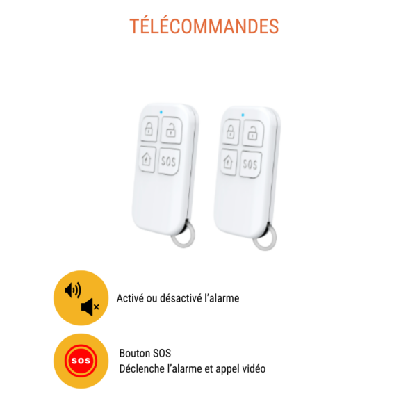 Le bouton SOS de la télécommande, déclenche instantanément l’alarme et un appel vidéo.