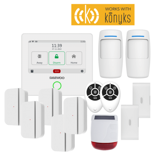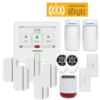1 centrale tactile + 5 contacteurs de porte + 2 détecteurs de mouvements + 2 télécommandes + 2 détecteurs de vibration WVD301 + 1 sirène extérieure solaire WOS301S