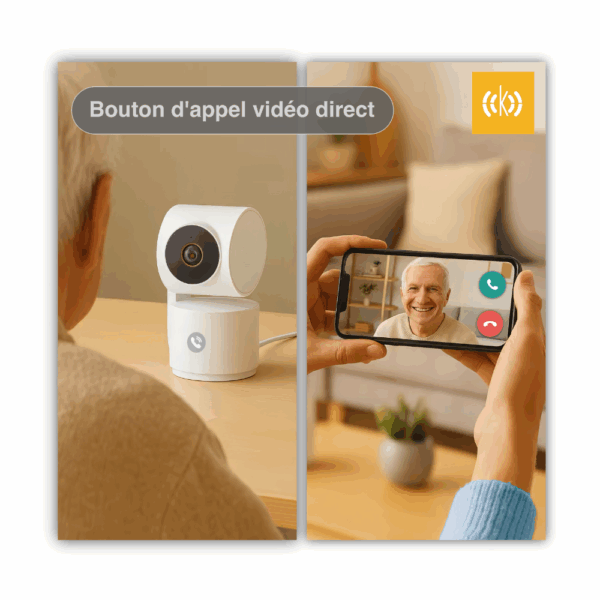 Idéal pour enfants et séniors avec son bouton d’appel vidéo direct et son mode vie privée.