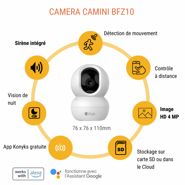 Motorisée, elle peut filmer tous les angles du salon avec sa sirène intégrée, elle décourage les intrus. Avec son détecteur de mouvement intelligent, la détection de sons intégrés, rien n'échappera à sa vigilance. La sirène intégrée découragera les intrus. Enregistrement des vidéos 3 MP sur carte SD ou dans le Cloud.