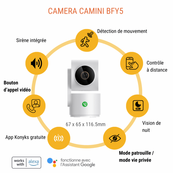 La caméra dispose d’une fonction d’appel vidéo par simple appui sur un bouton. Le mode patrouille et le mode vie privée physique en font un instrument de surveillance redoutable.