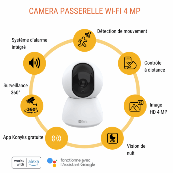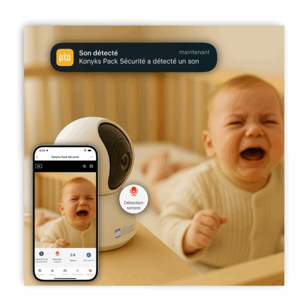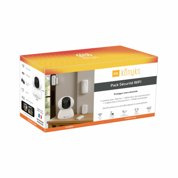 Le kit de sécurité Konyks apporte les mêmes avantages qu'un système d'alarme complet, avec un encombrement réduit puisque tout est intégré dans la caméra.