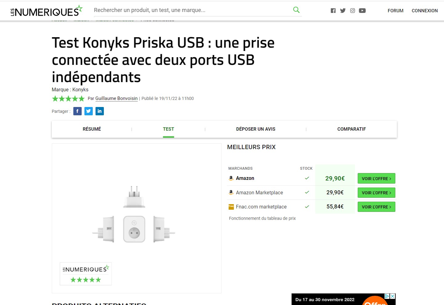 Priska Max Easy / Priska Max 3 / Priska USB sont les seules prises connectées ayant obtenues 5 étoiles Les Numériques